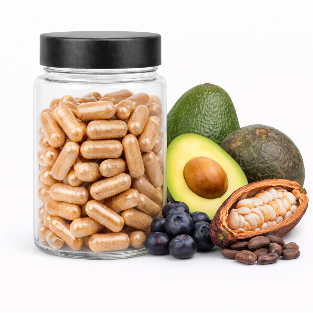 Mezcla en polvo de frutas liofilizadas: AGUACATE + ARÁNDANO + BOROJÓ + CACAO